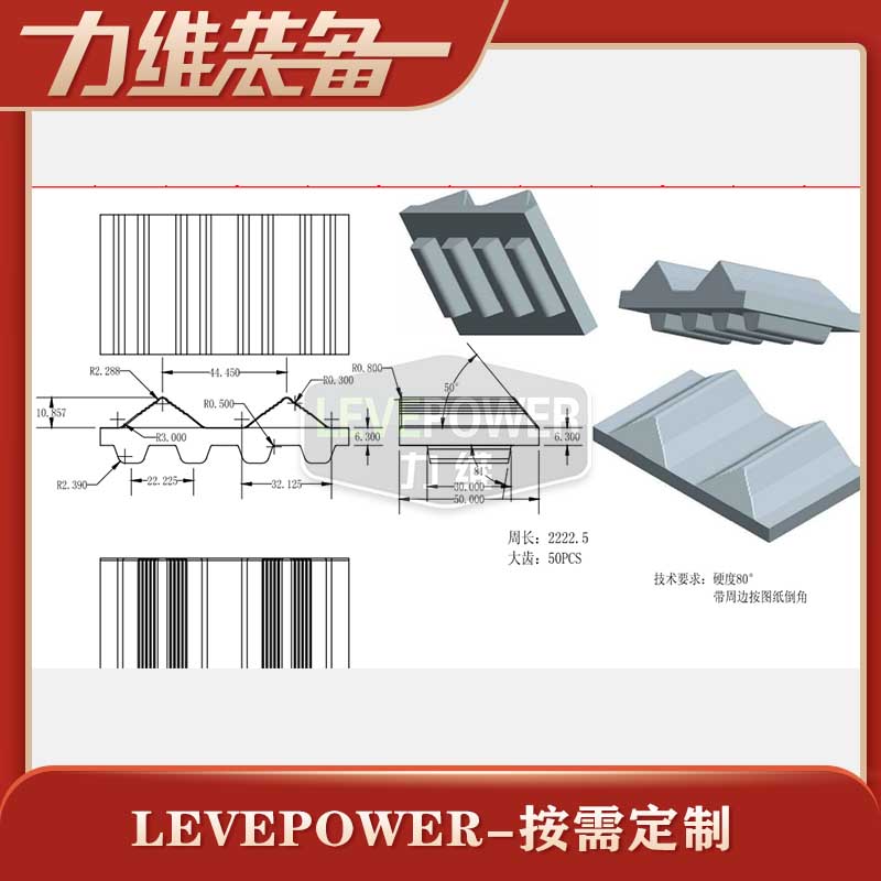 此履帶外花紋采用高齒三角狀高齒設(shè)計,增加了外花紋的設(shè)計強度,并提高了履帶本身的抓地力,內(nèi)齒采用矩形長條設(shè)計,節(jié)距較密,和外花紋呈倍數(shù)配合,此產(chǎn)品采用抗拉伸橡膠材料,內(nèi)置凱夫拉纖維,絕非普通的鋼絲,是一款提升履帶的抗拉伸能力的耐磨橡膠履帶,此履帶可配套于橡膠履帶底盤、無線遙控底盤等多種機型上使用。此產(chǎn)品用于不超過總載重100kg以內(nèi)的機械裝備使用。
