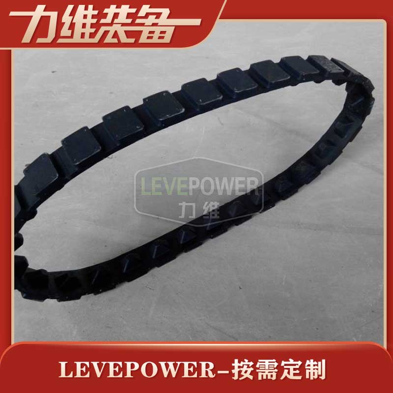 此產品采用復合橡膠材料,內置杜邦公司生產的凱夫拉纖維,此款特種橡膠履帶具有重量輕,超耐磨,抗拉伸等優點。此款履帶抓地能力較強,非常適合配套于消防機器人、機器人底盤上配套使用,用于柏油路,土質路面效果都很好,此產品用于不超過總載重80kg以內的機械裝備使用。