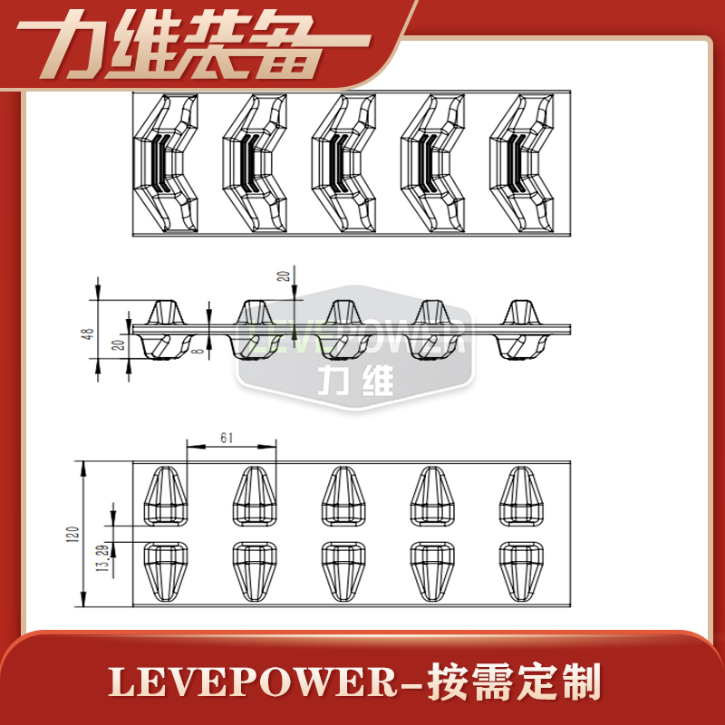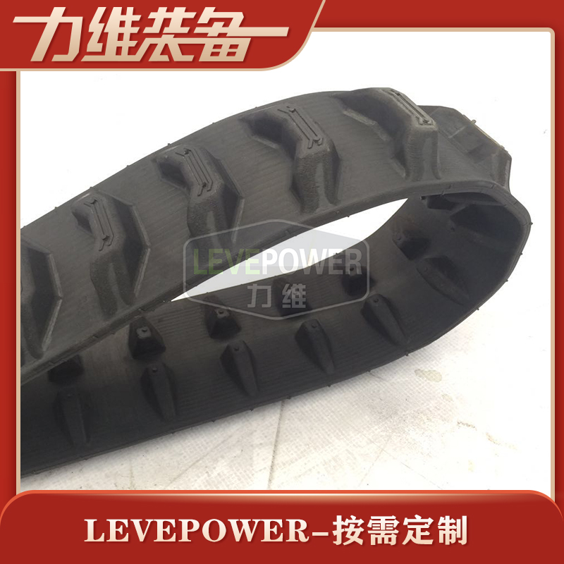 此款橡膠履帶外花紋采用較大塊狀外花紋設計,內齒設計為貼邊兩側大梯形角內齒,絕對不會出現脫帶問題。適合機器人底盤等機配套使用。