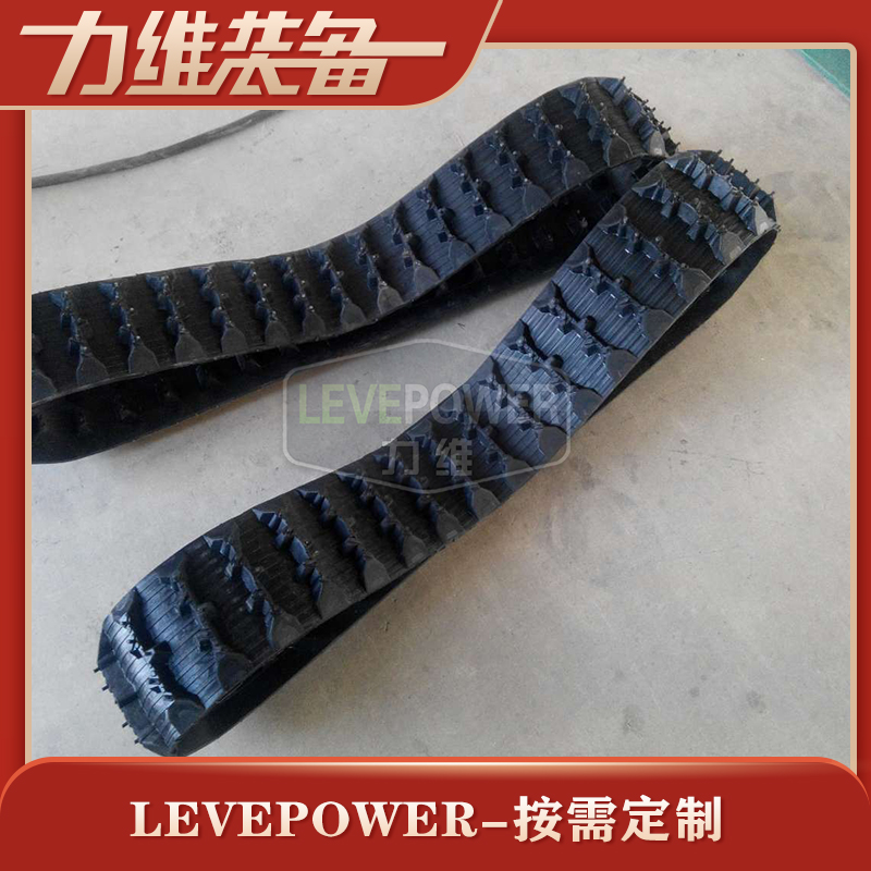 此款特種橡膠履帶外花紋采用不規則橫紋設計,內齒節距適中,采用高齒梯形兩側設計。此設計主要提高了履帶的抓地力,帶體設計很薄,適用于雪地等軟路面使用。